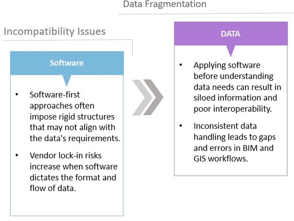 Whether hosted in the cloud or managed on-premises, your data infrastructure must support seamless integration between disciplines and tools. The visual comparison above emphasizes the need for well-connected, scalable systems that reduce duplication and enable smart decision-making. At BIMxcel, we help you design resilient, future-ready platforms tailored to your operational and regulatory needs.